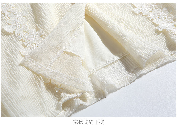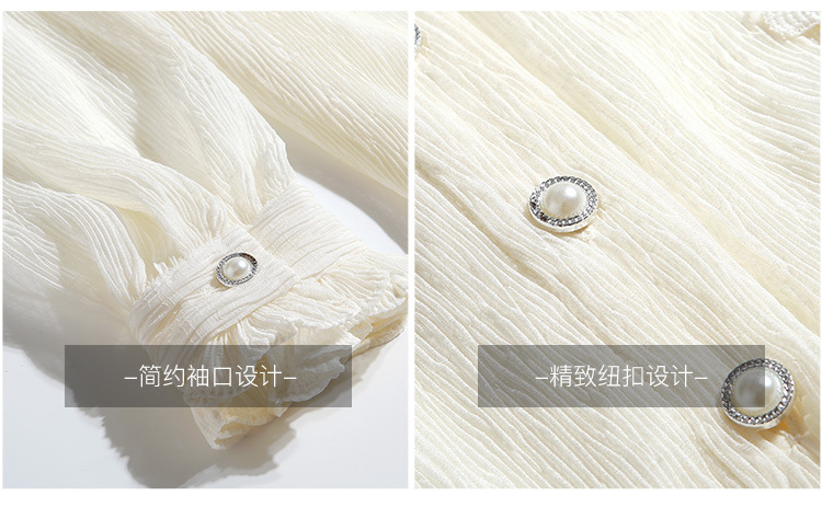 Niche Pearl Stringy Selvedge Stand-up Collar Lace Pleated Long Sleeve Shirt