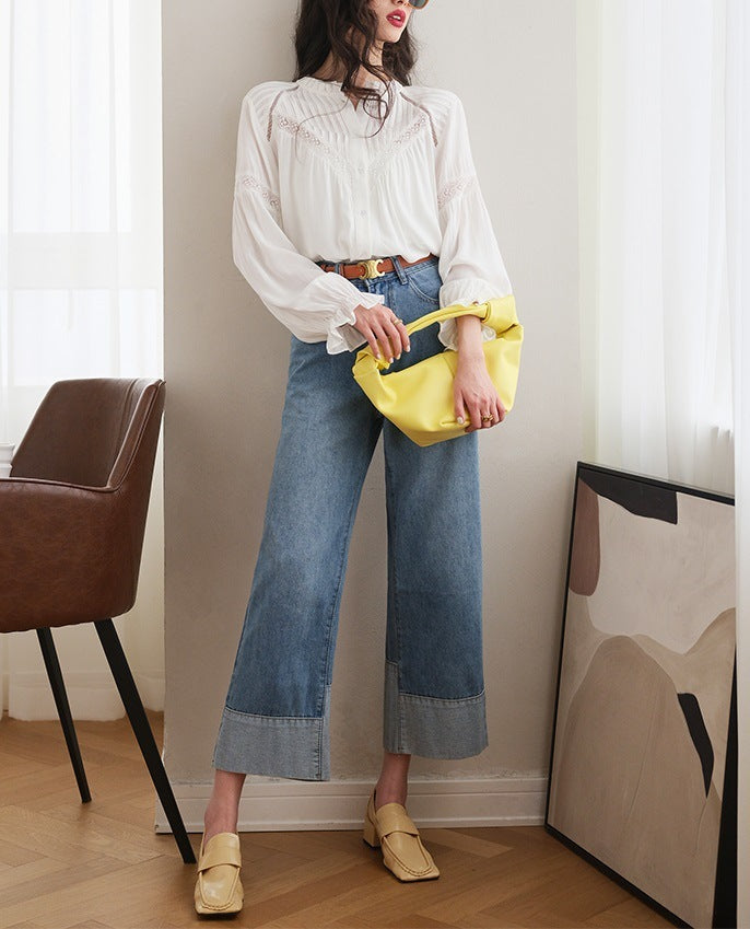 Patchwork French Design Style White Shirt
