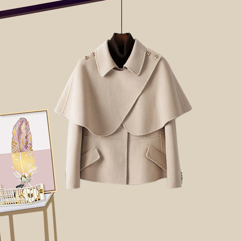 Color: apricot coat, khaki coat, black pants, beige suit, khaki suit