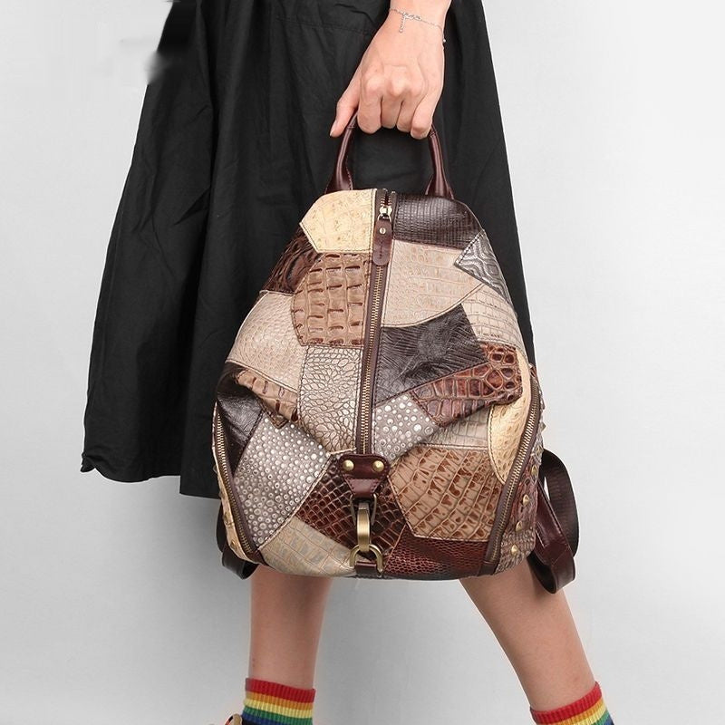 Retro Leather Backpackage Women's Large-capacity Backpack