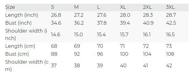 Size: S, M, L, XL, XXL, XXXL