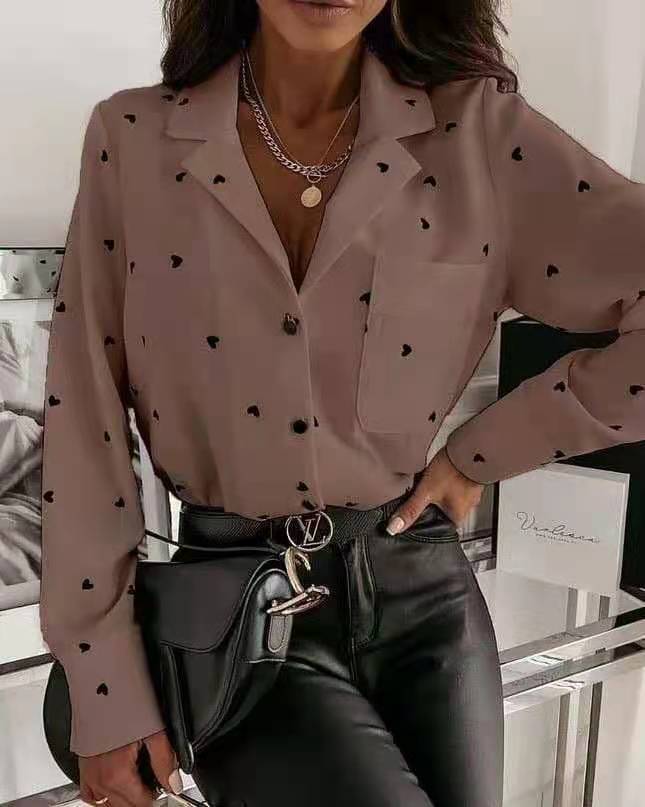 Slim Button Polka Dot Long-Sleeved Shirt Top Women's