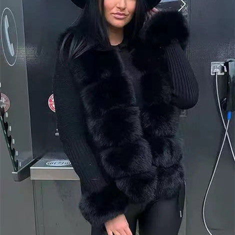 Solid Color Placket Cuff Detachable Knitted Cardigan Women's Knitted Sweater