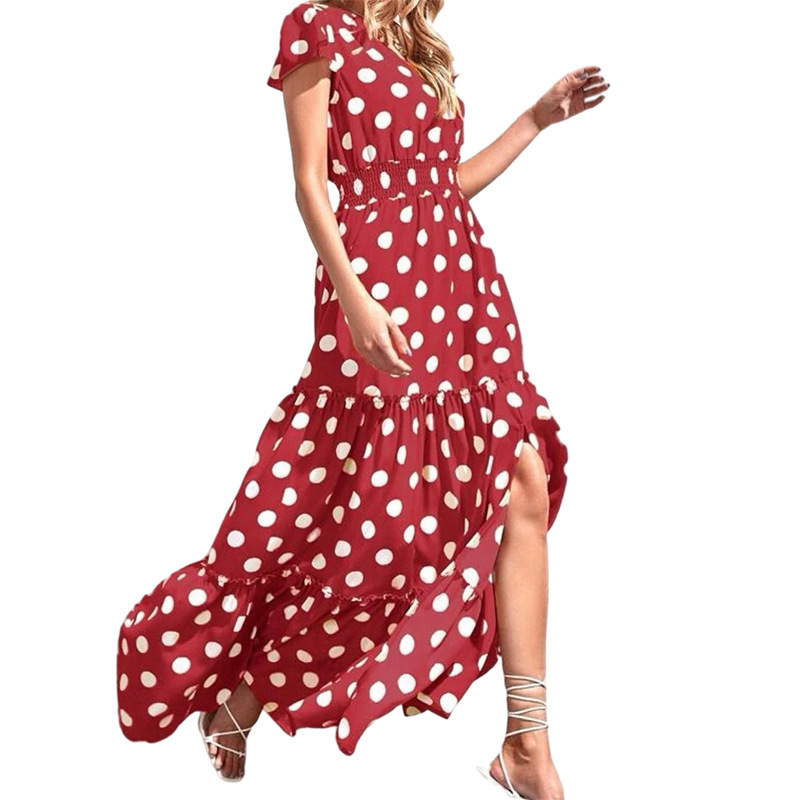 Split V-neck Side Polka Dot Dress
