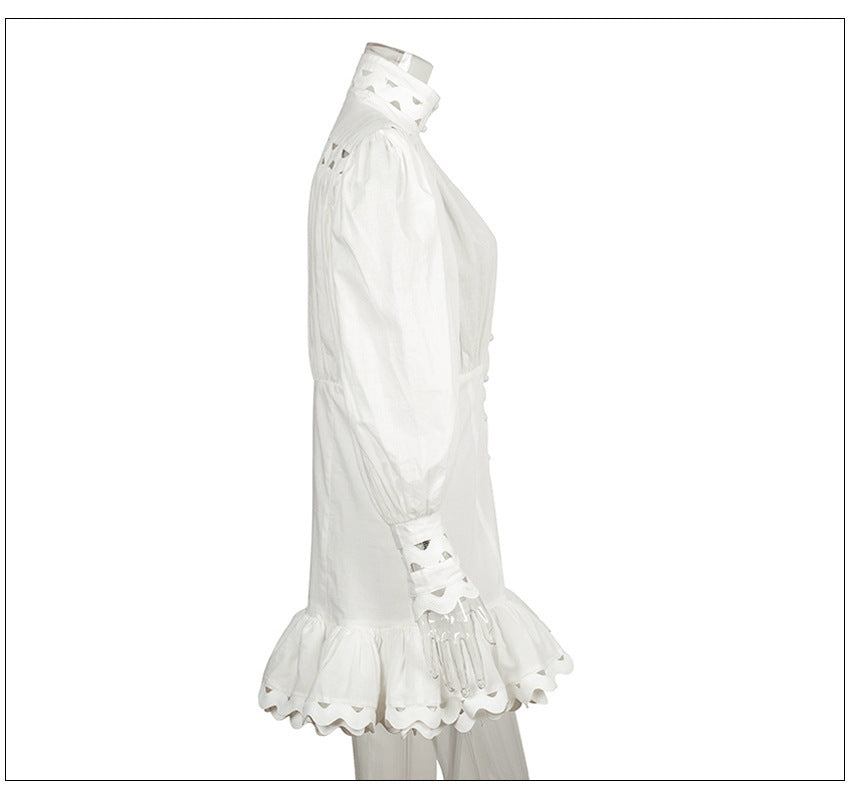 Stand collar cutout ruffled dress
