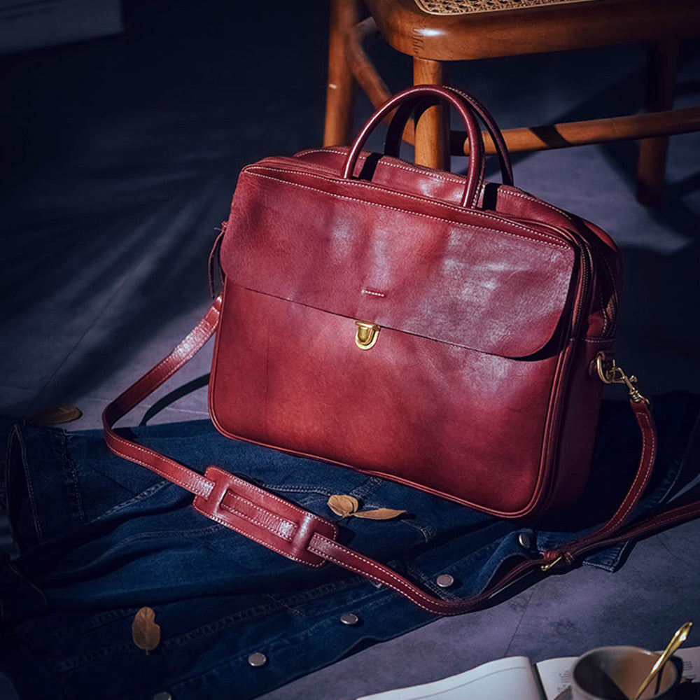 Street Vegetable Tanned Leather Men's Large Capacity Multi Compartment