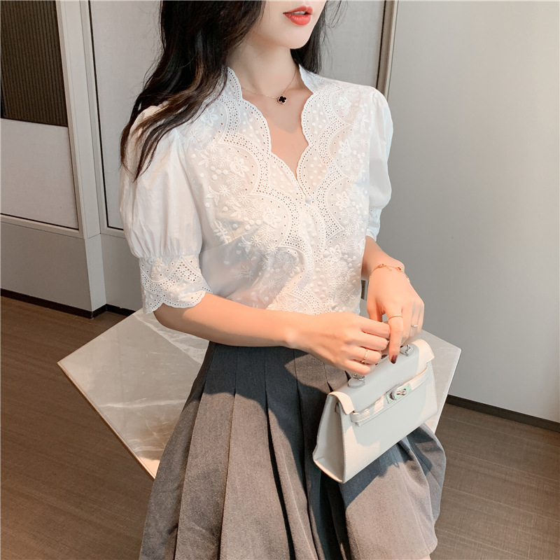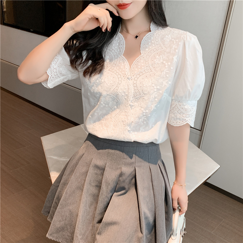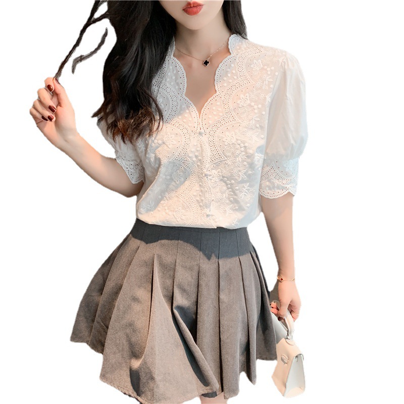 Summer Temperament Design Minority Bubble Sleeve Shirt