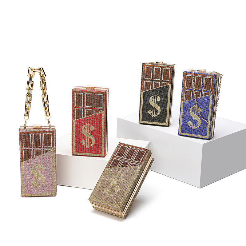 US Dollar Full Diamond Rhinestone Chocolate Bag