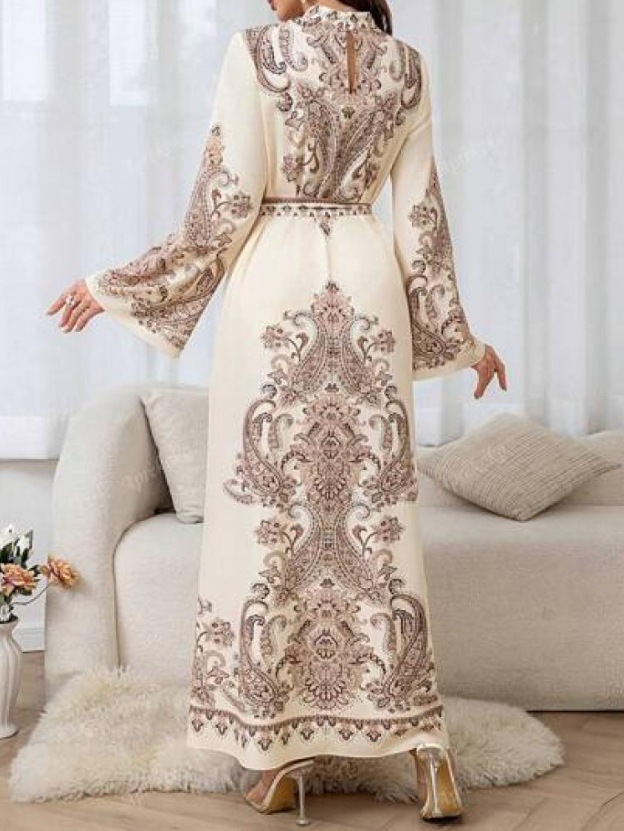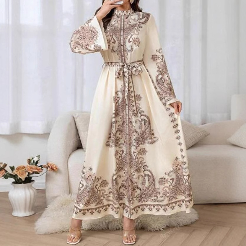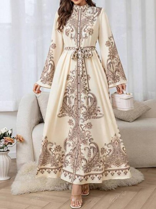 Wavy Edge Long Middle Eastern Retro Printed Dress
