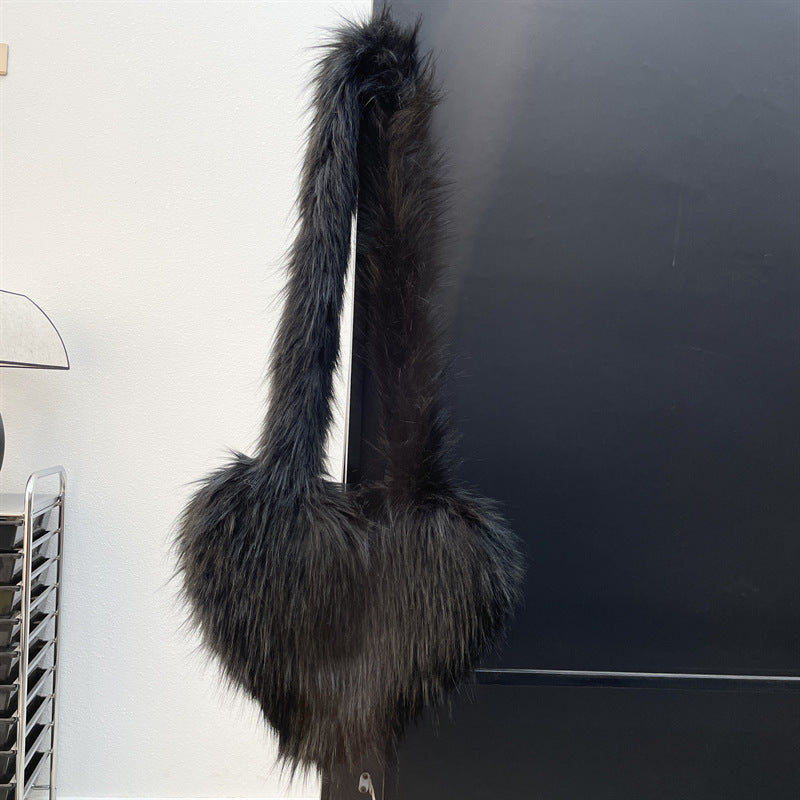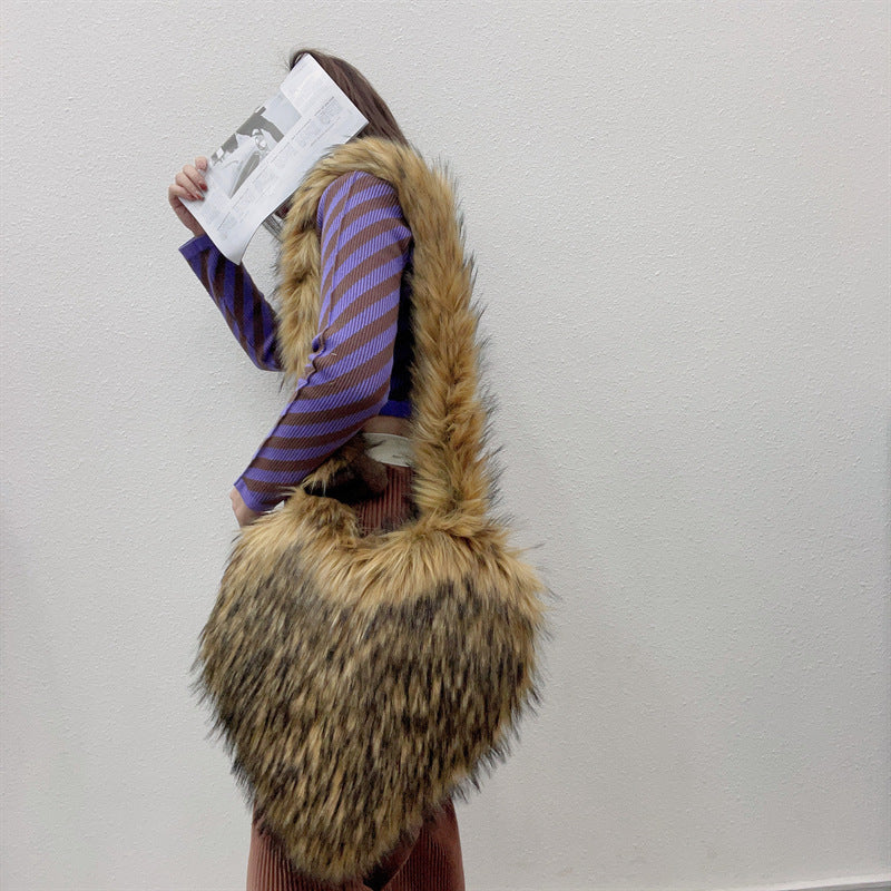 Winter Fleece Shoulder Bags Women Heart Shape Crossbody Bag Plush Large Capacity Love Bag