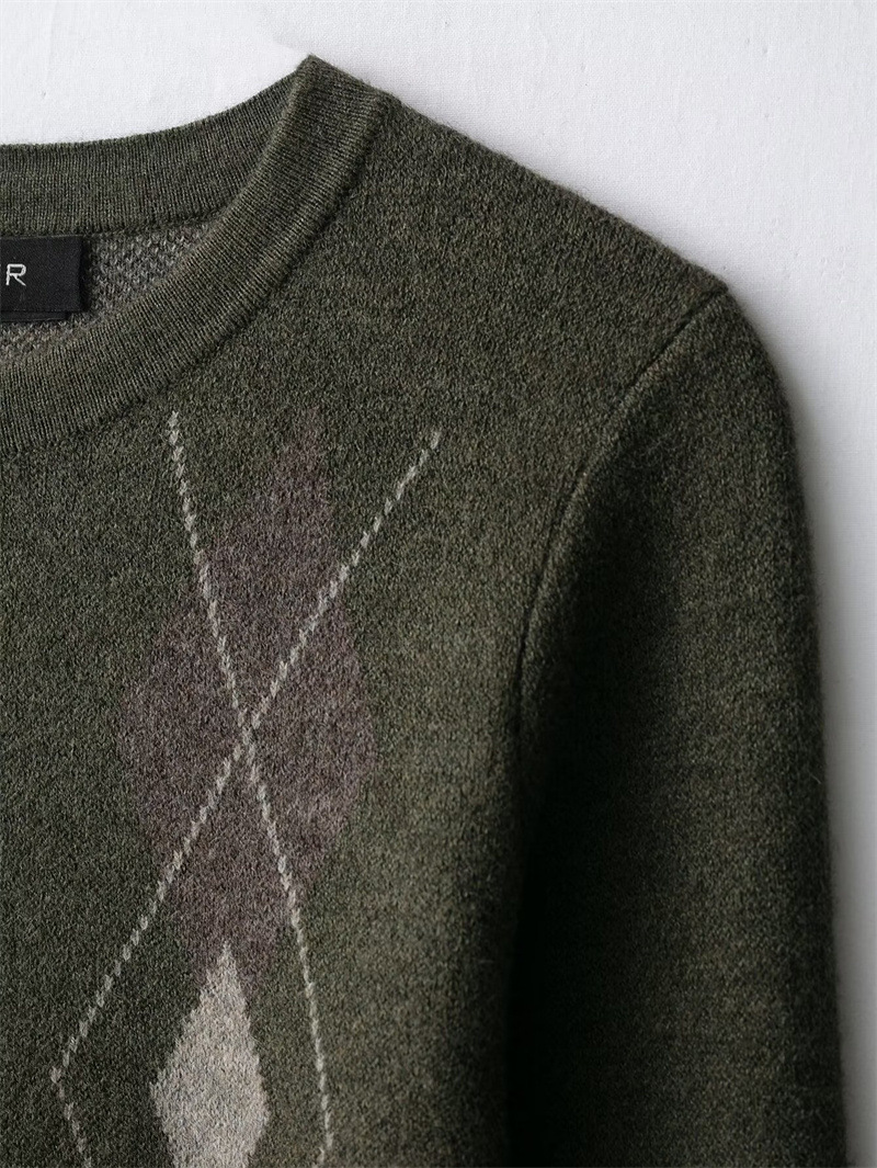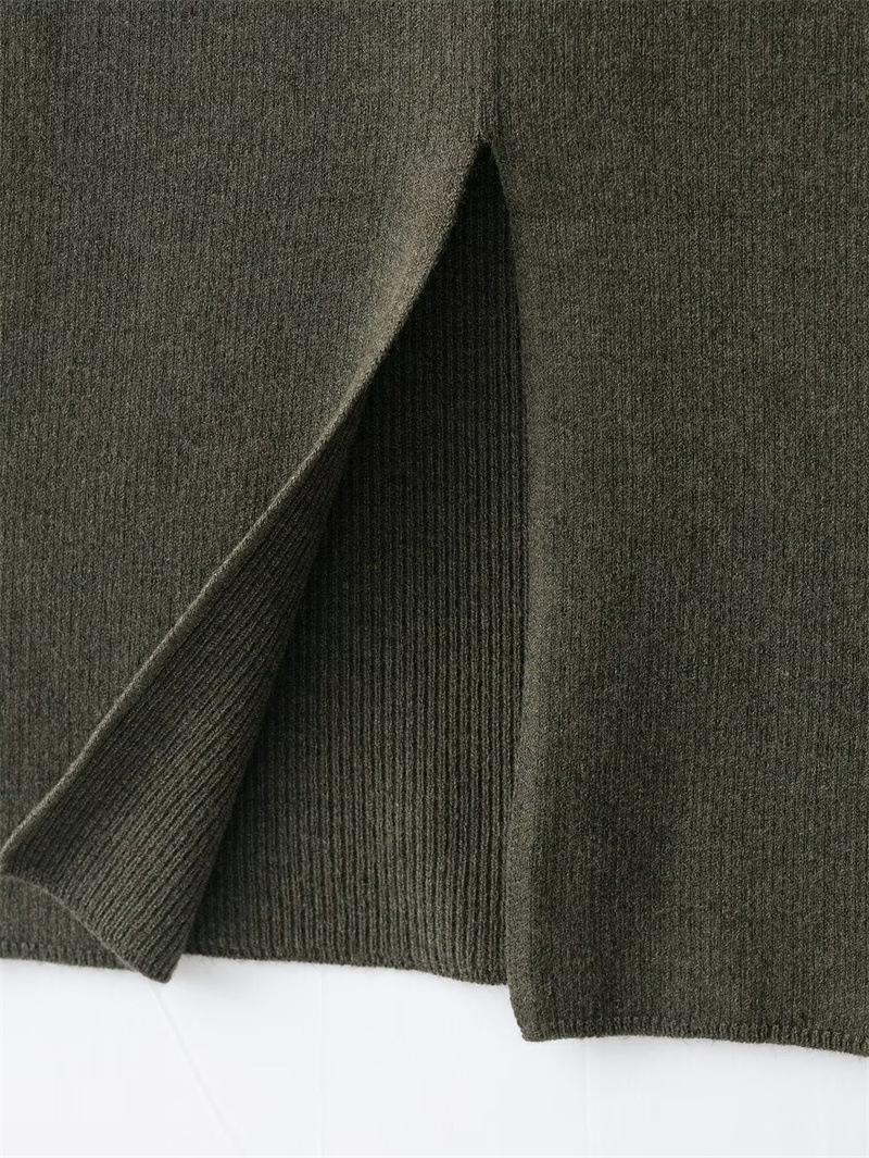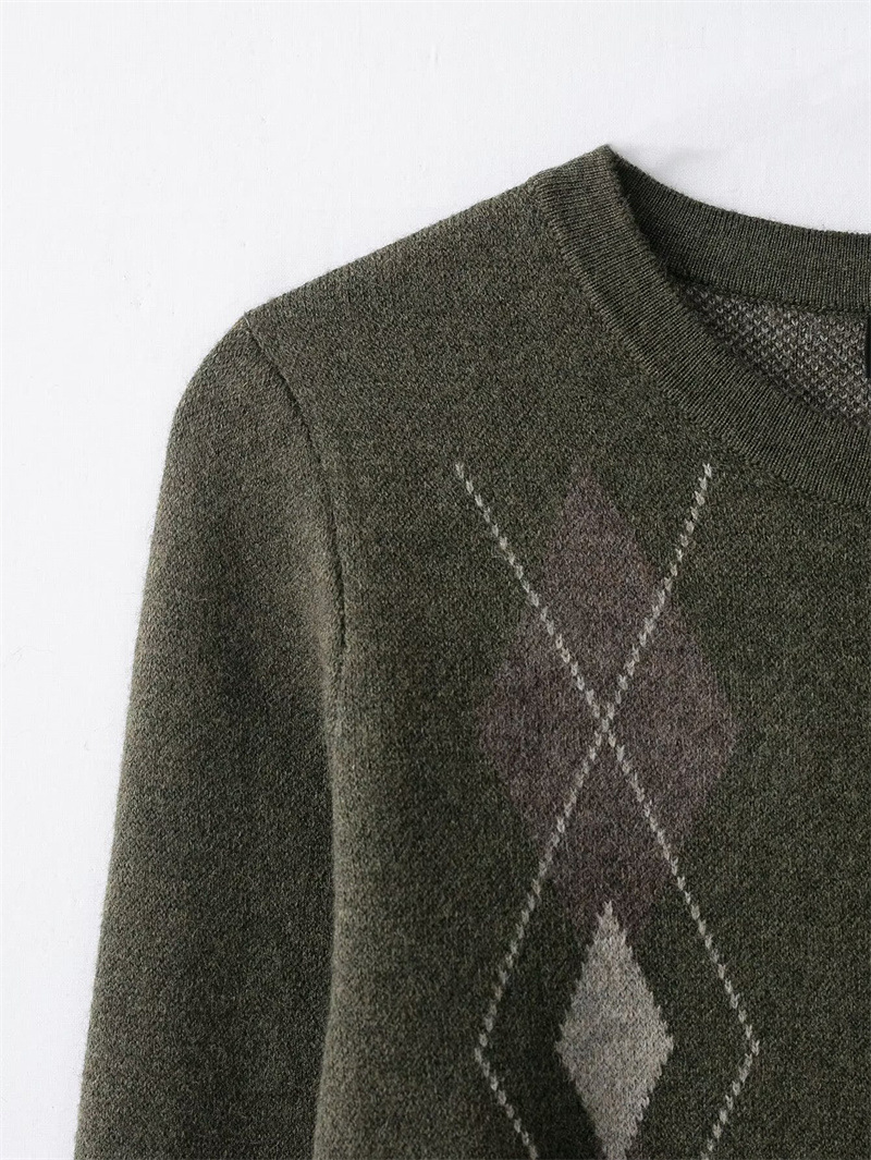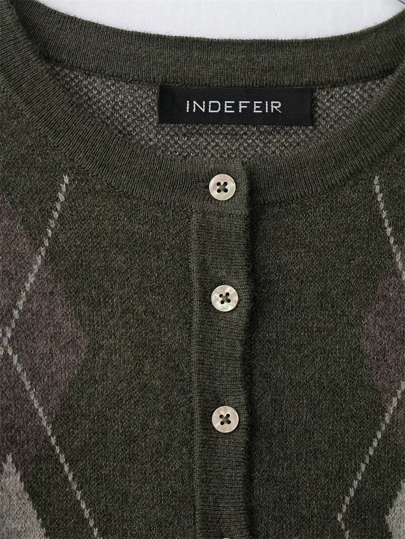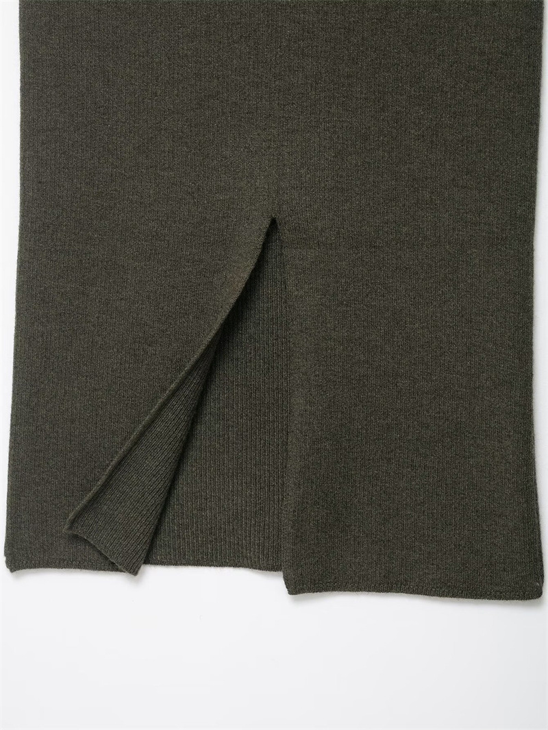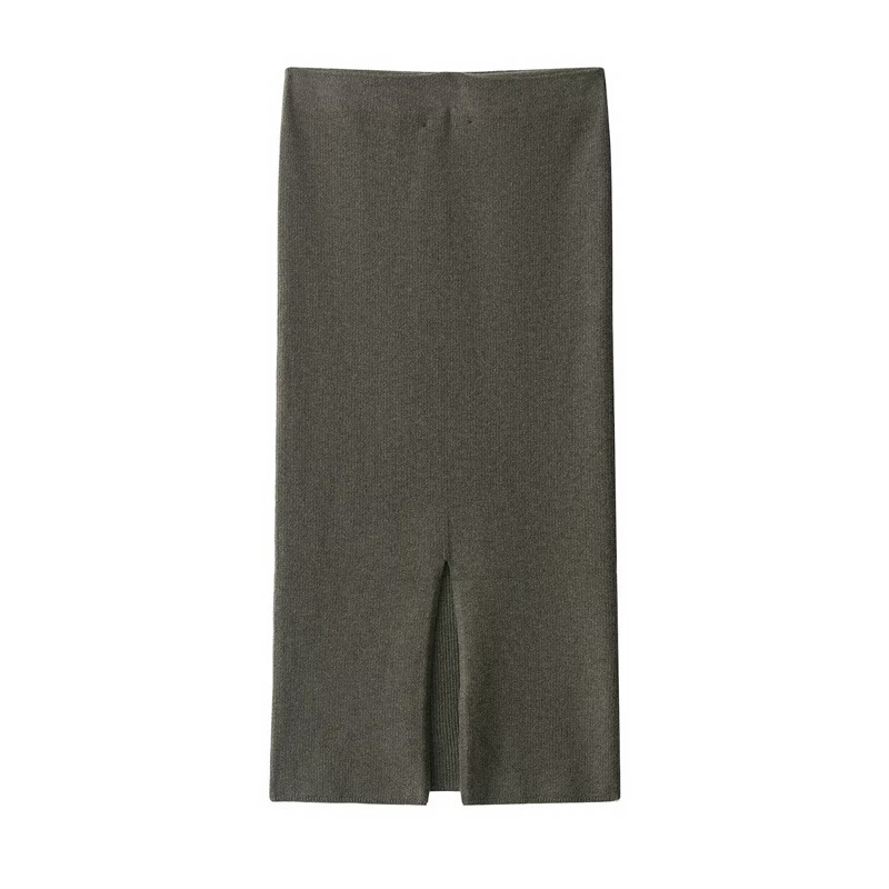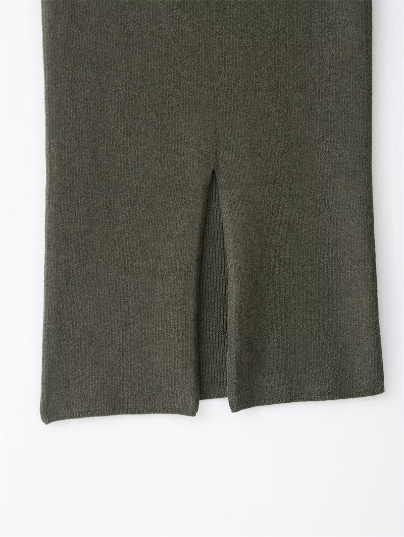 With Belt Diamond Pattern Knitted Coat Midi Skirt Suit