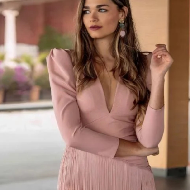Women's Deep V-neck Long-sleeved Suit Dress