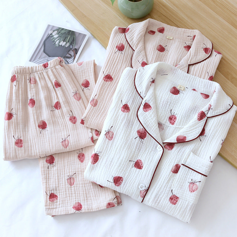 Women's Fashion Cotton Autumn Double-layer Gauze Home Wear Suit