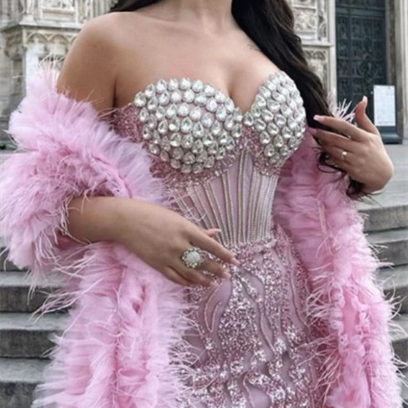 Women's Fashion Leisure Rhinestone Sequined Embroidered Tube Top Dress