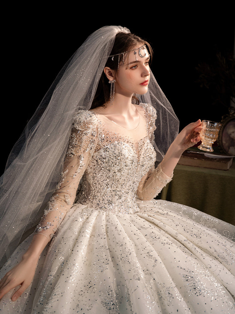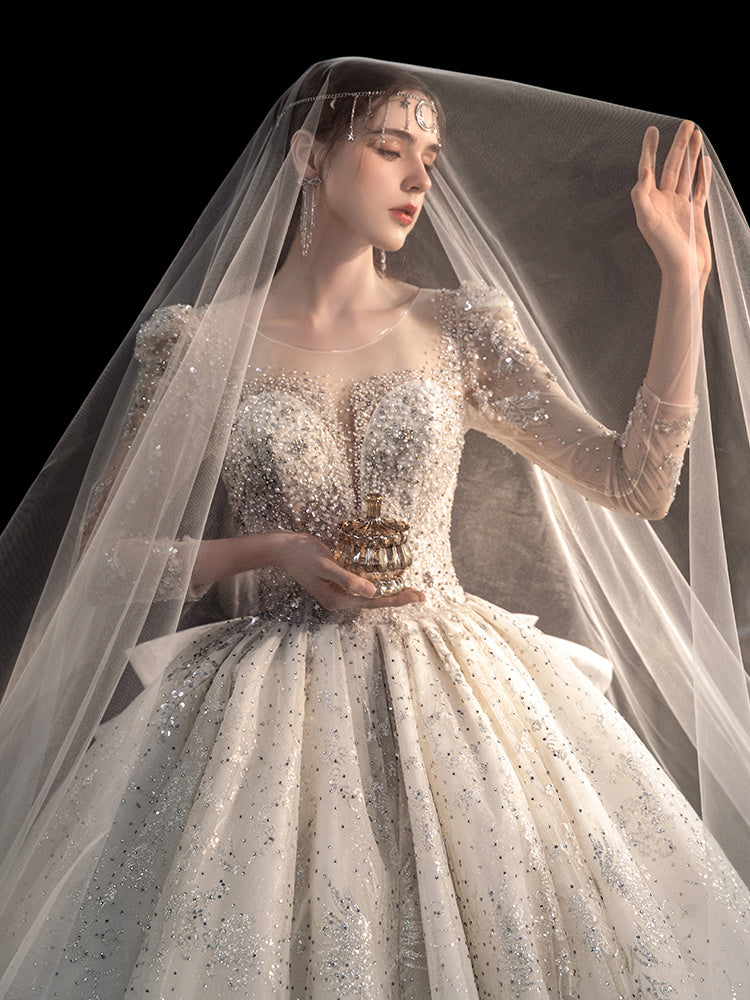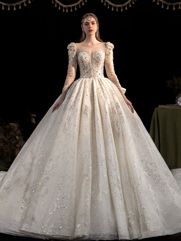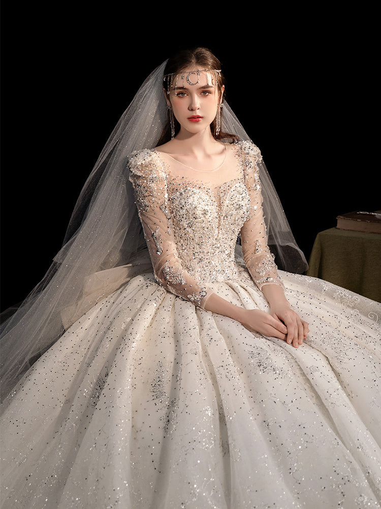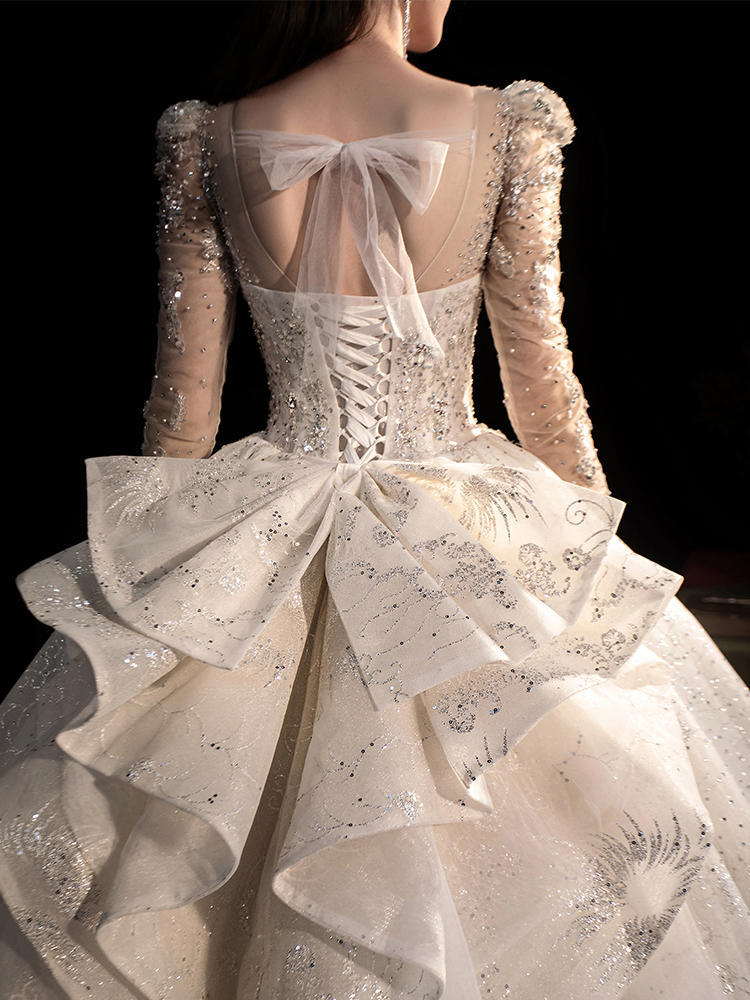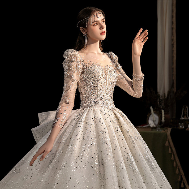 Women's Fashion Long-sleeved Vintage Court Style Heavy-duty Large Trailing Dress