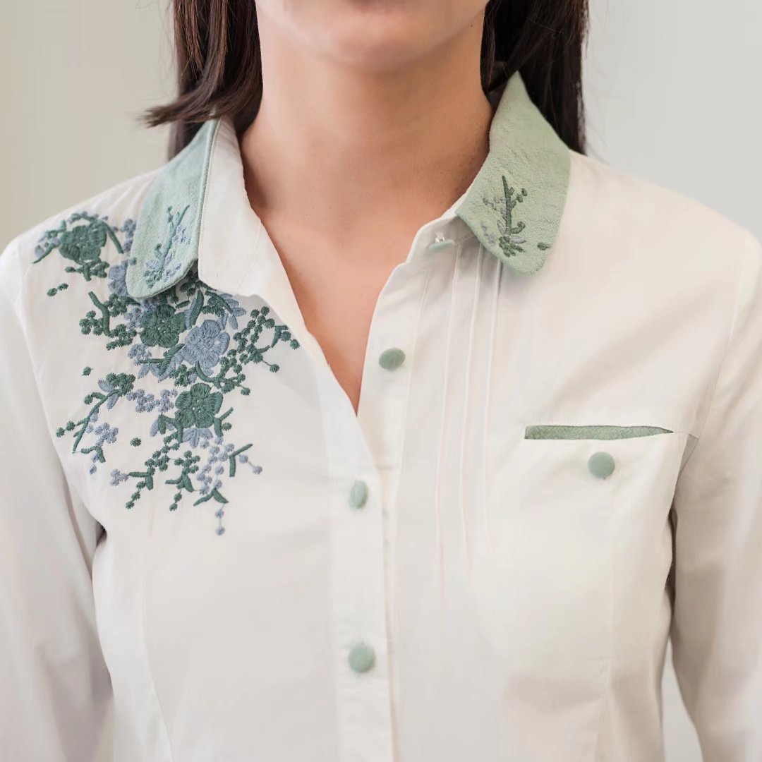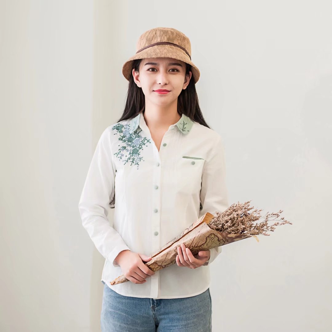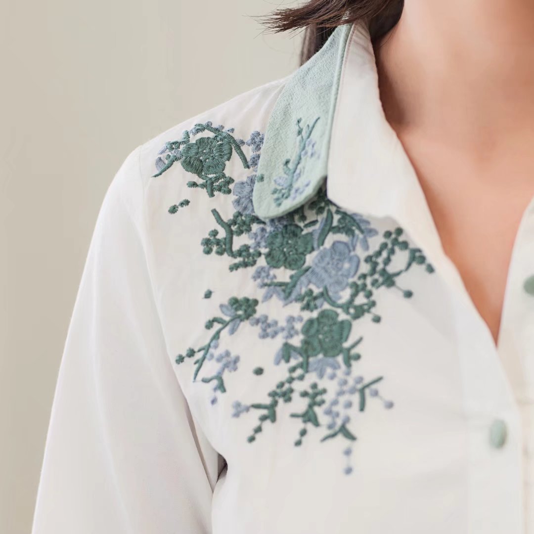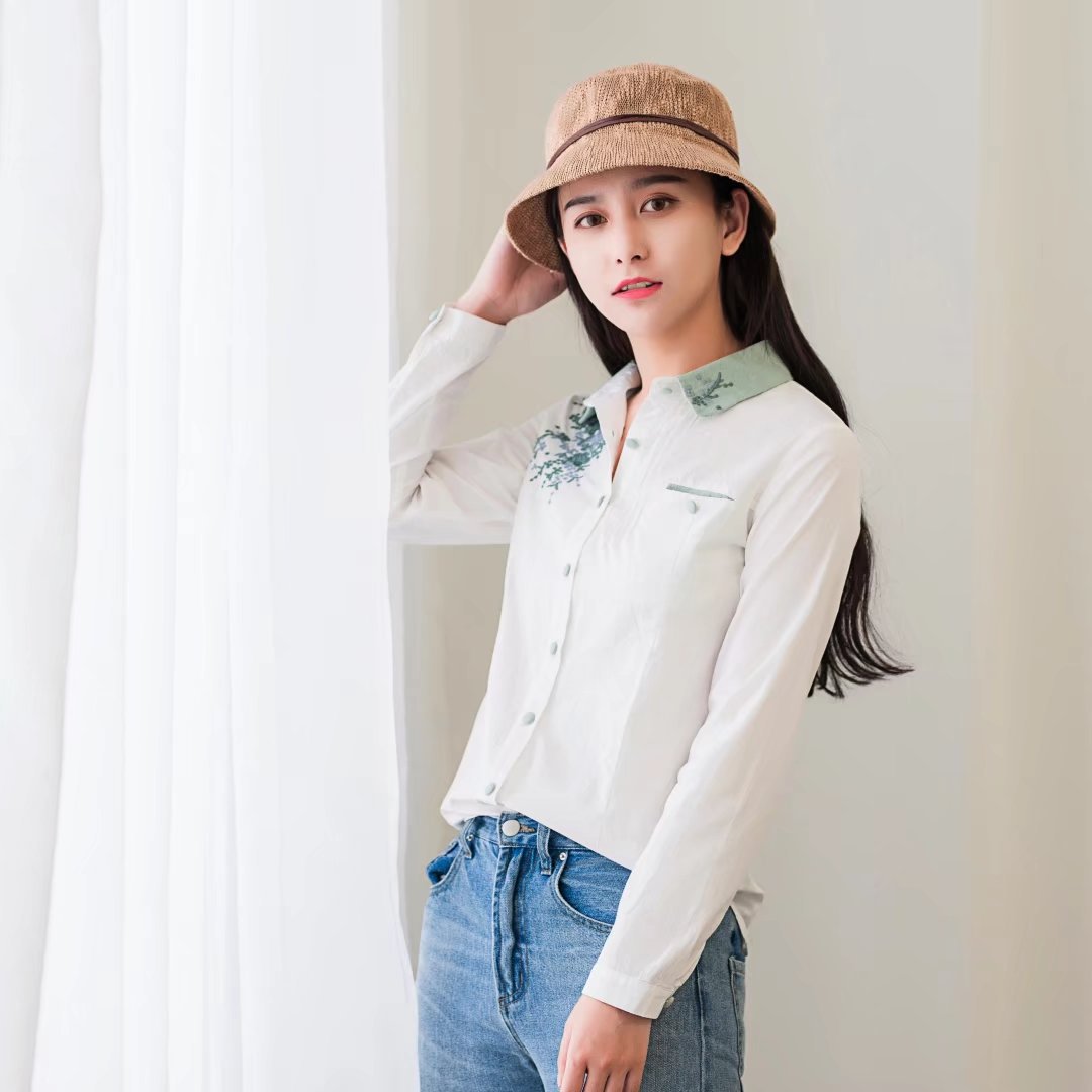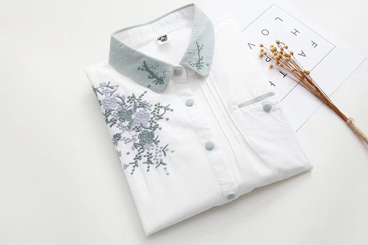 Women's New Style Literary Embroidery Long-sleeved Shirt