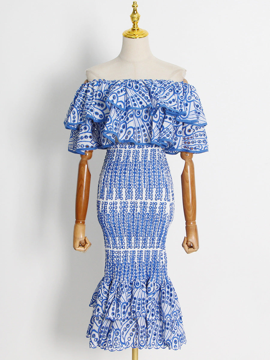 Women's Ruffled Irregular Shirt High Waist Fishtail Skirt Suit