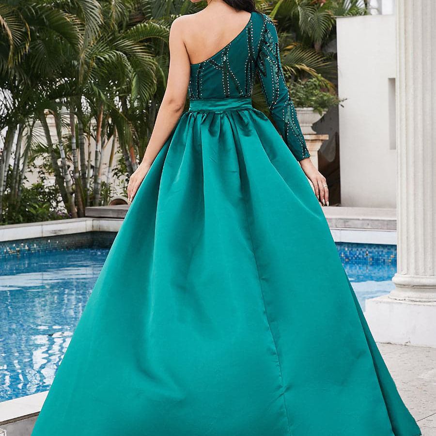 Women's Sequined Solid Color Mid-waist Red Banquet Dress