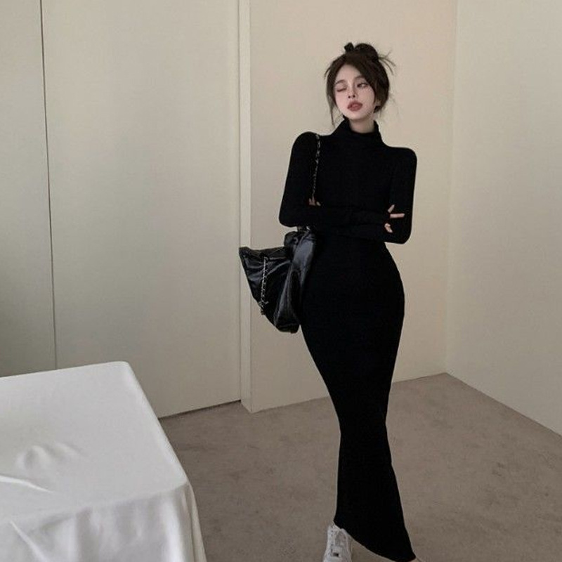 Womens Slim-Fit Knitted Turtleneck Maxi Dress