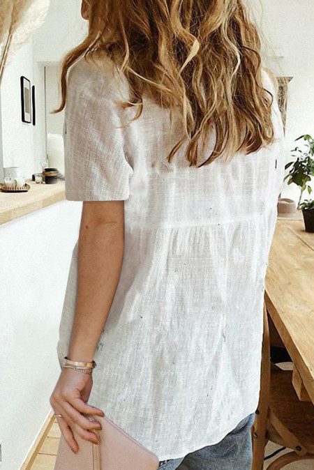 Women's Slub Cotton Short-sleeved Elegant Shirt