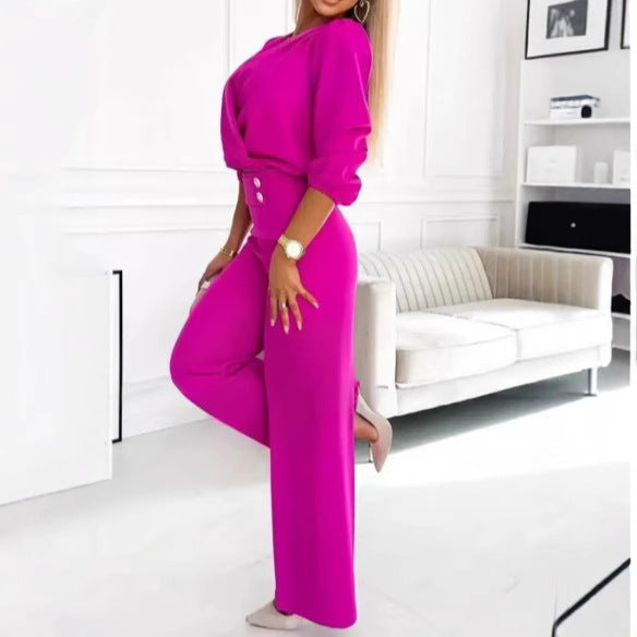 Women's Solid Color And V-neck Two-button 2-piece Trousers Suit