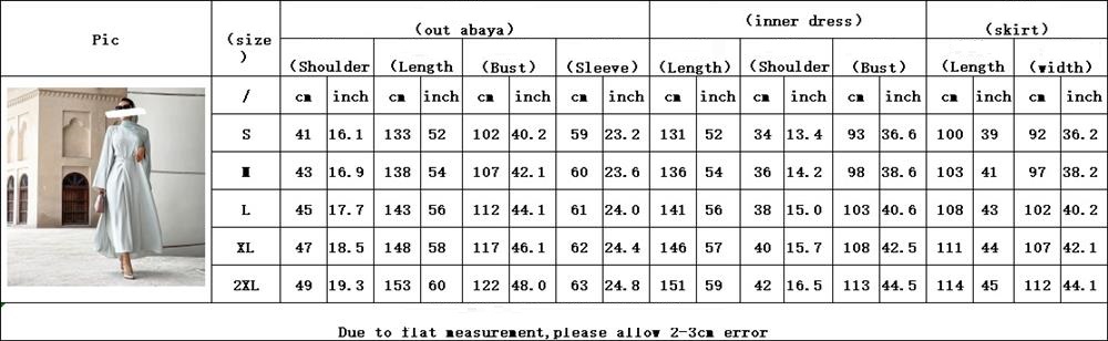 This three piece suit is a long skirt inside, with skirt circumference outside and coat outside