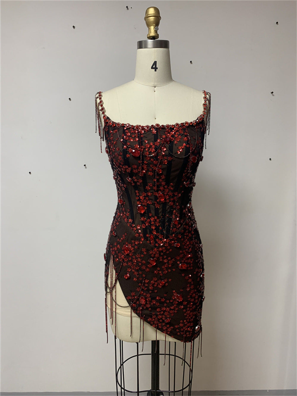 Women's Summer Camisole Diamond-embedded Tight Mini Dress