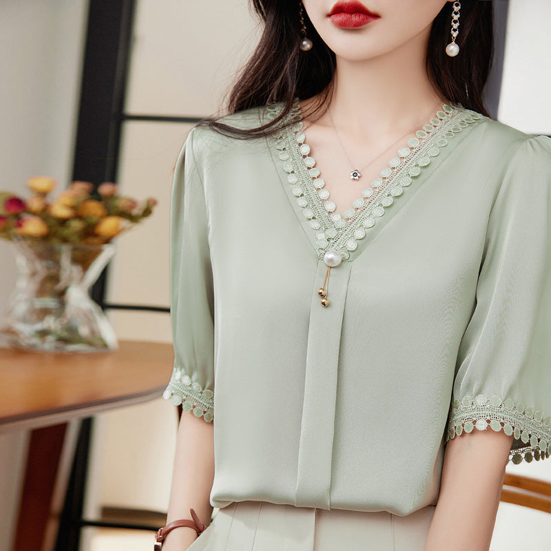 Women's V-neck Chiffon Shirt Design Top