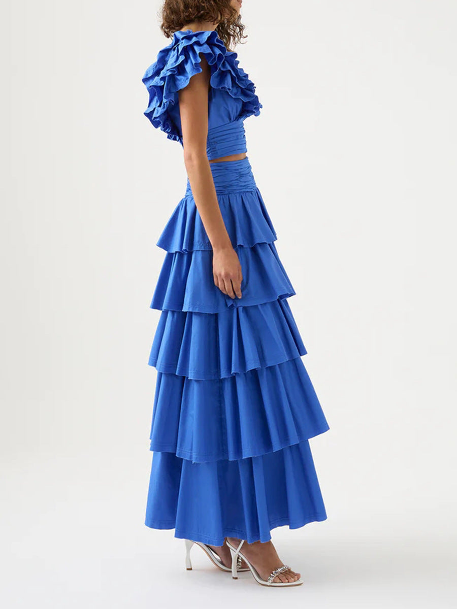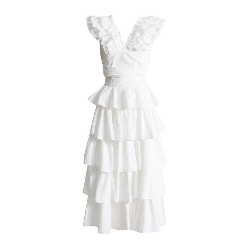 Women's V-neck Lace Short Top High Waist Cake Layer Dress Suit